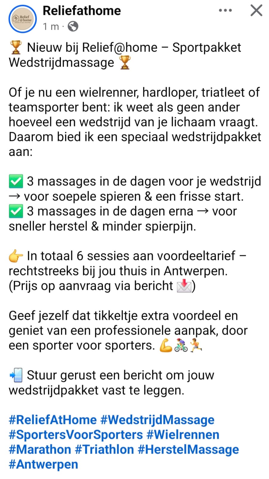 Nieuw!!! Sportpakket-Wedstrijdmassage 3x3